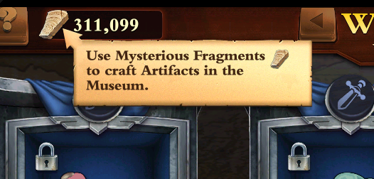 Hierboven op de afbeelding zie je het aantal Fragments, deze ben je nodig om nieuwe artifatcs meet te kunnen craften.( Dus nieuwe Artifacts krijgen) Het craften behandel ik later.