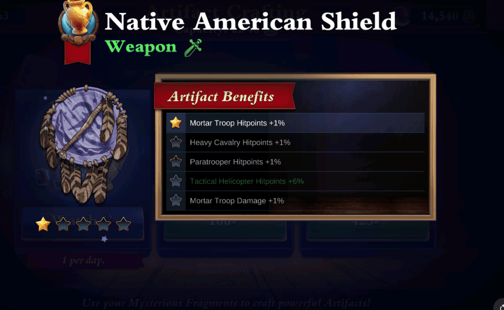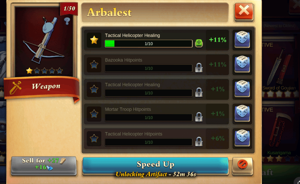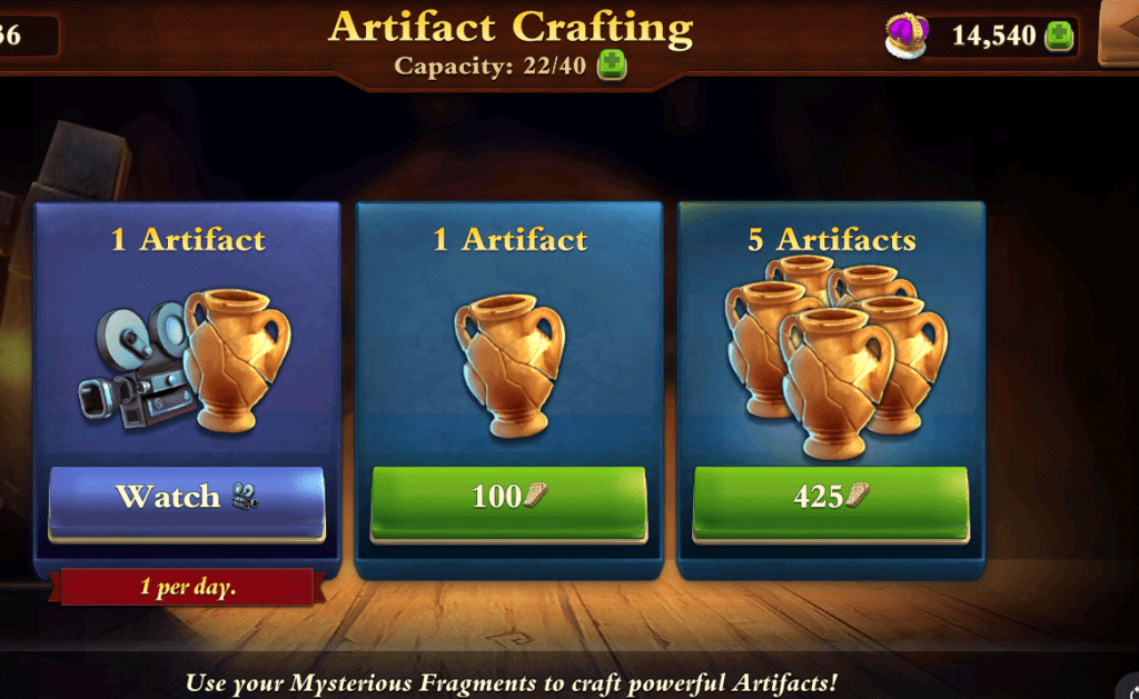 Om nieuwe Artifacts te verkrijgen zul je moeten craften, je kan elke dag 1 gratis craft doen door een filmpje te kijken.